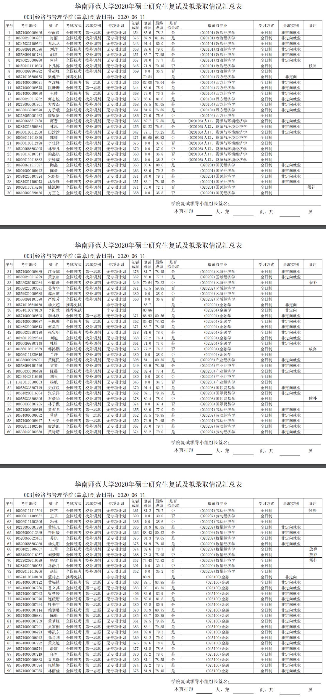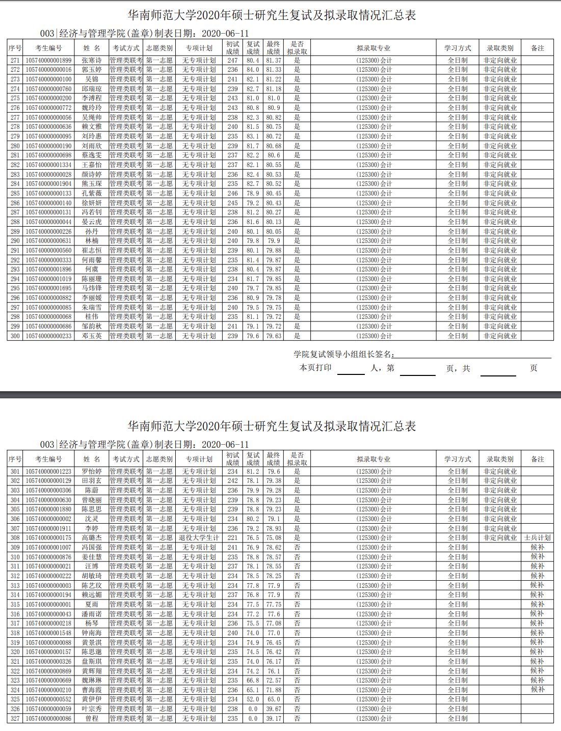 华南师范考研辅导班:2020年华南师范大学经管学院硕士研究生复试成绩及拟录取名单