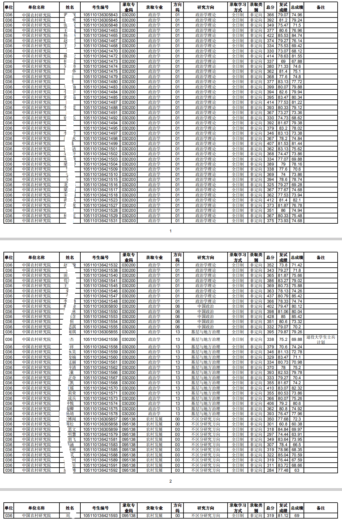 华中师范考研辅导班:2020年华中师范大学中国农村研究院硕士研究生拟录取名单