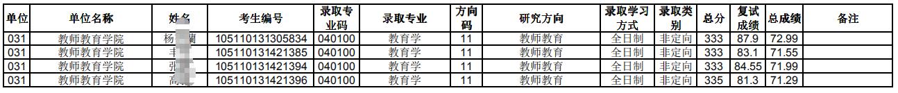 华中师范考研辅导班:2020年华中师范大学教师教育学院硕士研究生拟录取名单