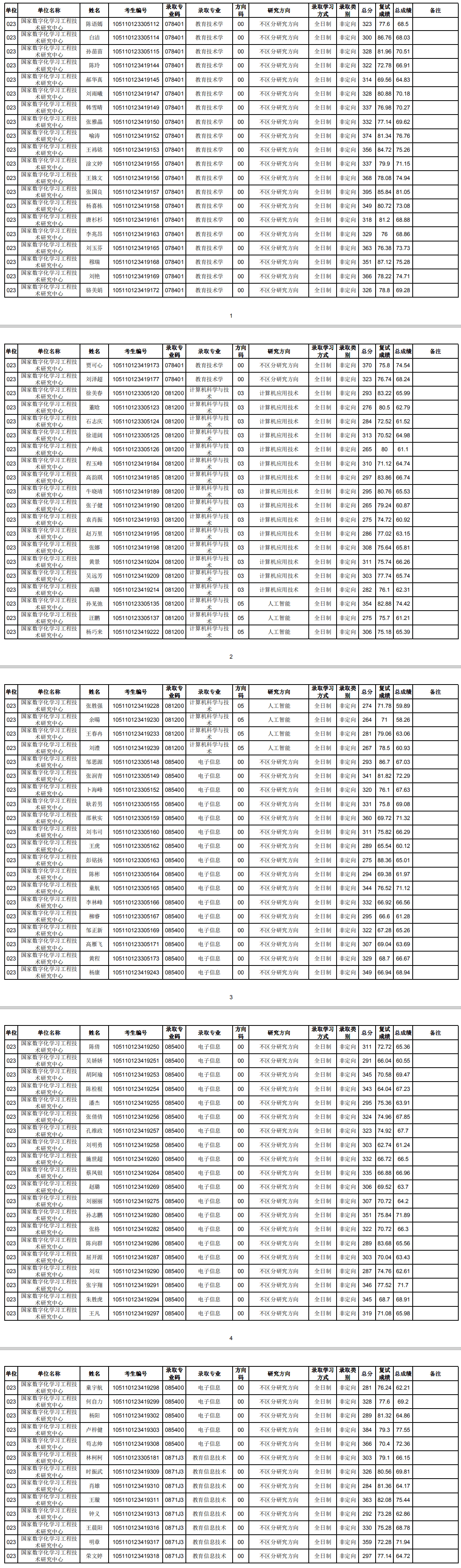 华中师范考研辅导班:2020年华中师范大学国家数字化学习工程技术研究中心硕士研究生考研拟录取名单