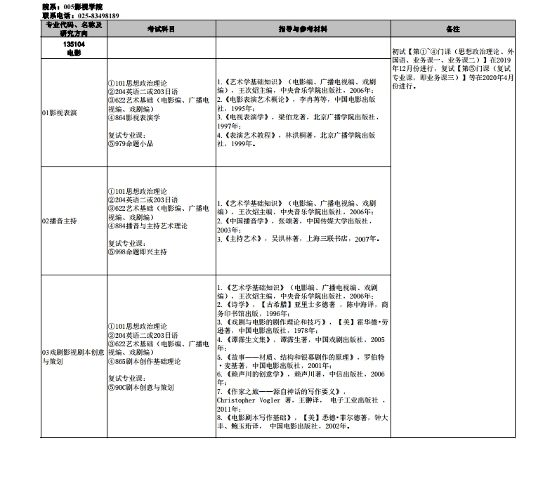 南京艺术学院考研辅导:2020年南艺影视学院全日制专硕研究生招生专业目录