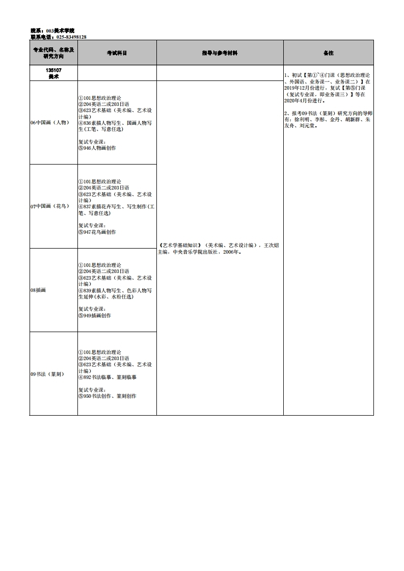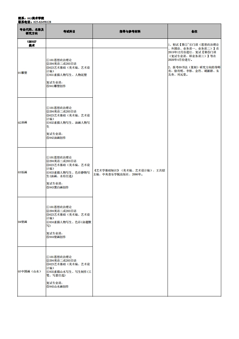 南京艺术学院考研辅导:2020年南艺美术学院全日制专硕研究生招生专业目录