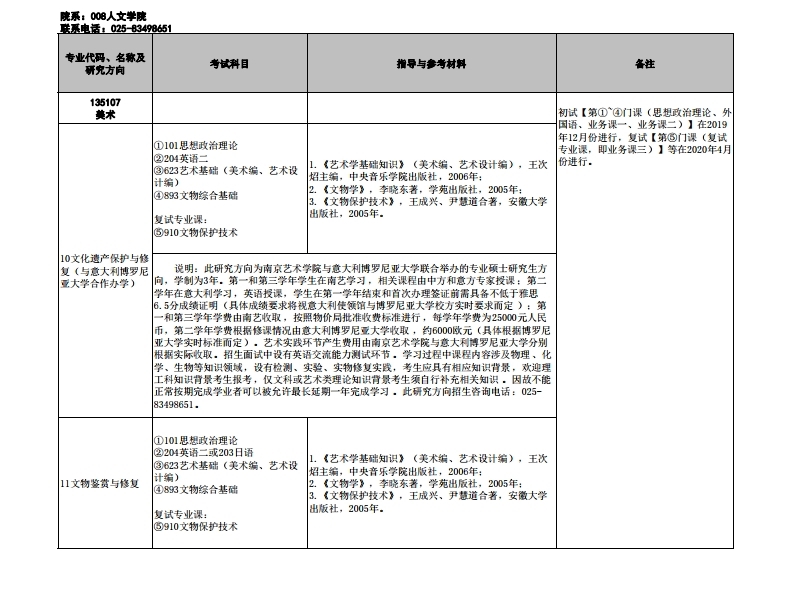 南京艺术学院考研辅导:2020年南艺人文学院全日制专硕研究生招生专业目录
