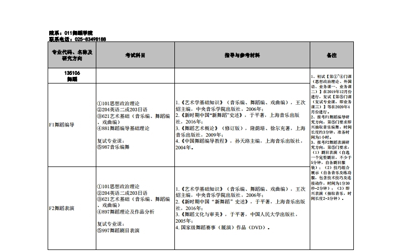 南京艺术学院考研辅导:2020年南艺舞蹈学院非全日制专硕研究生招生专业目录