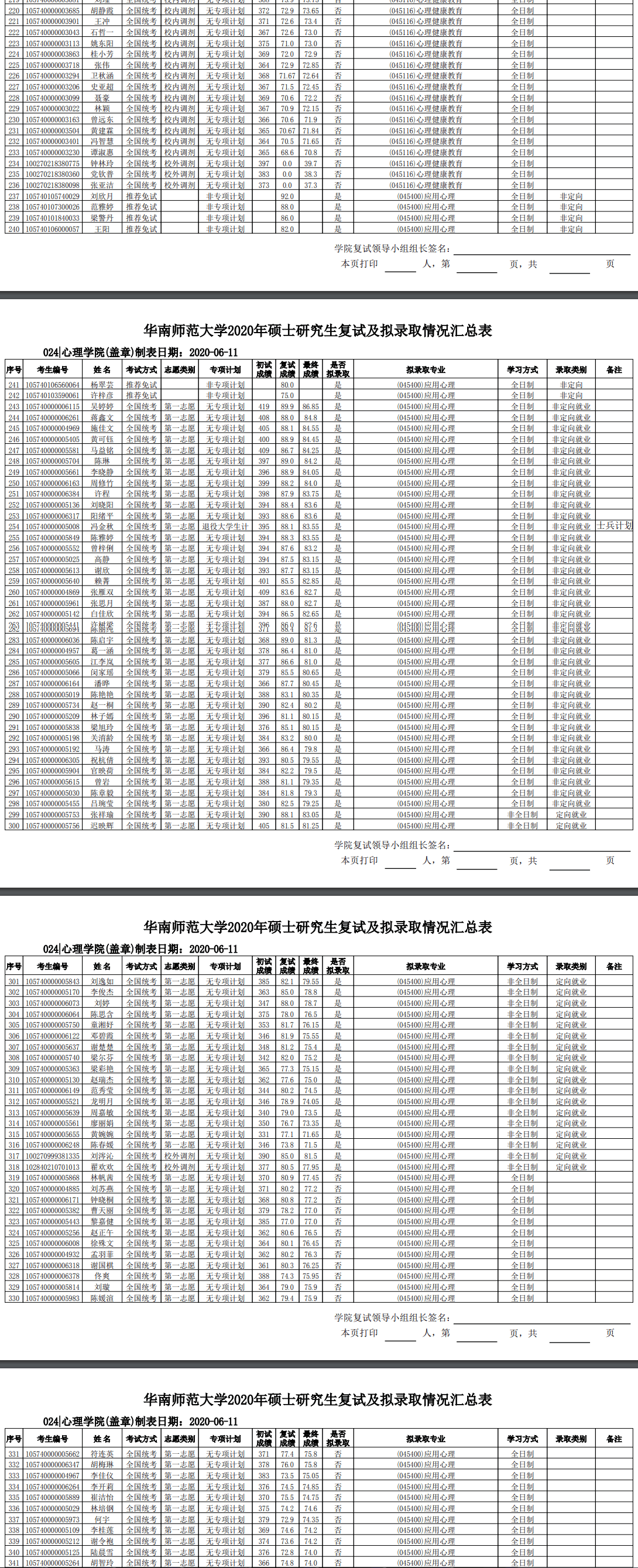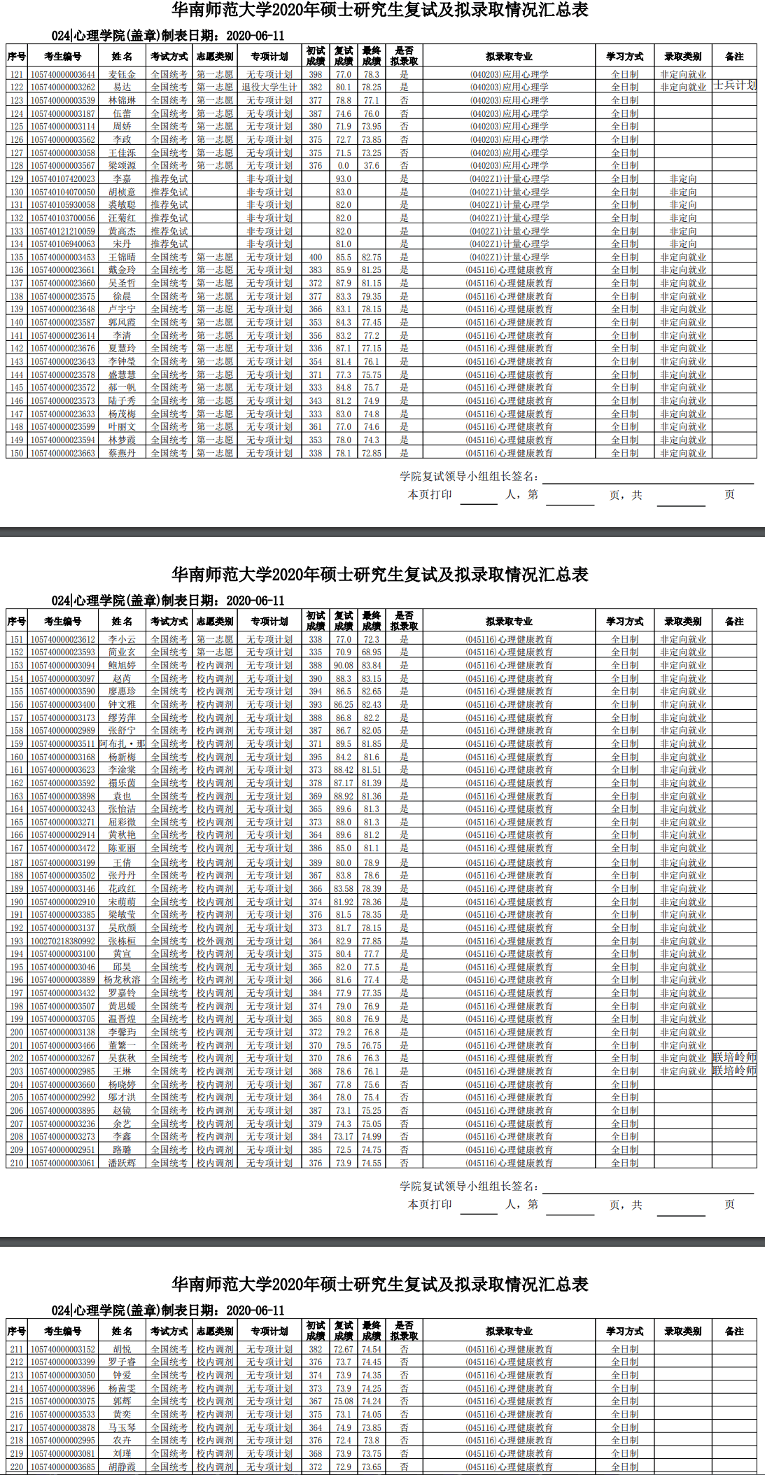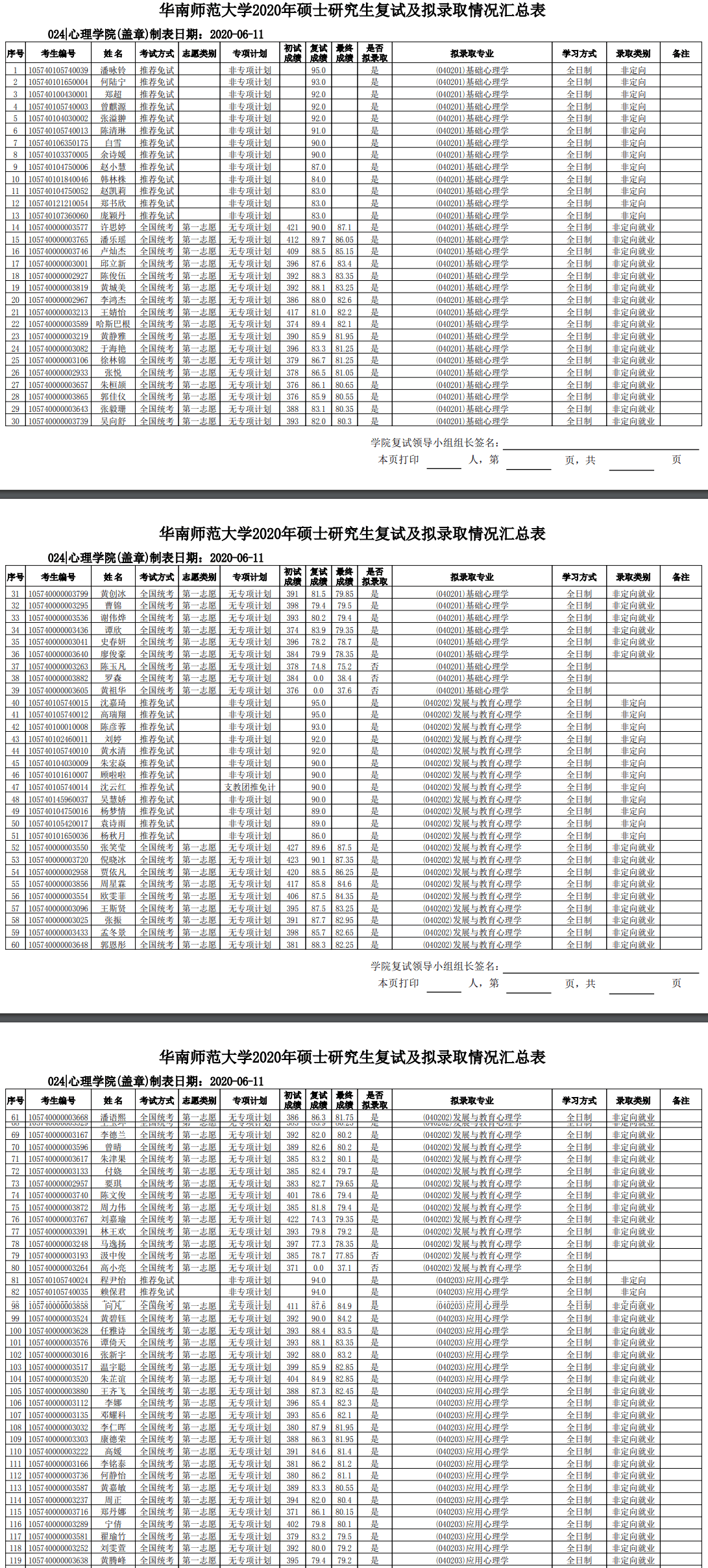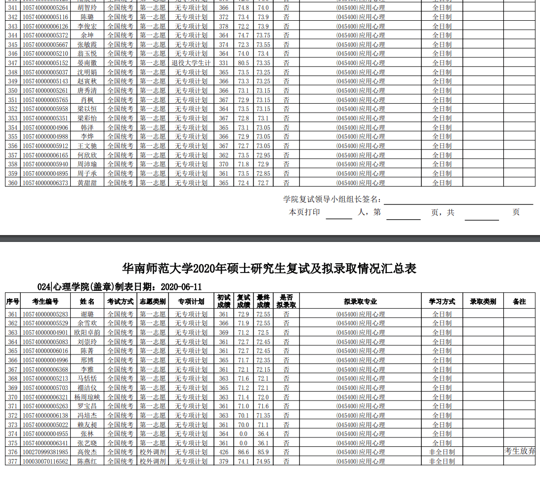 华南师范考研辅导班:2020年华南师范大学心理学院硕士研究生考研拟录取名单