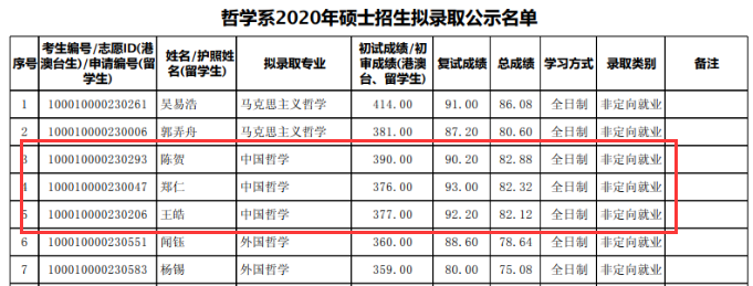 四、20年录取名单