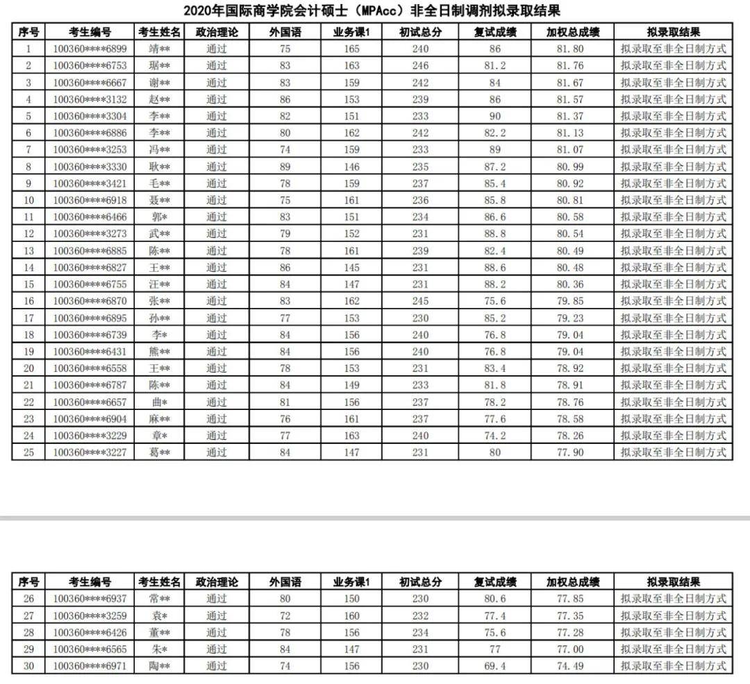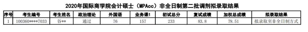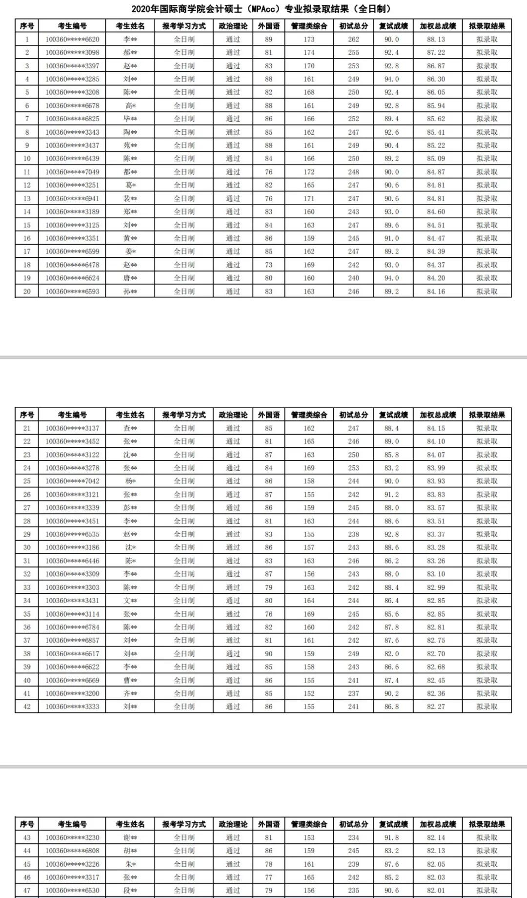 会计硕士MPAcc全日制拟录取47人,最低分234,最高分362