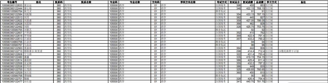 2021年中山大学药学院招生人数、初复试科目、参考书、分数线、拟录取名单、真题