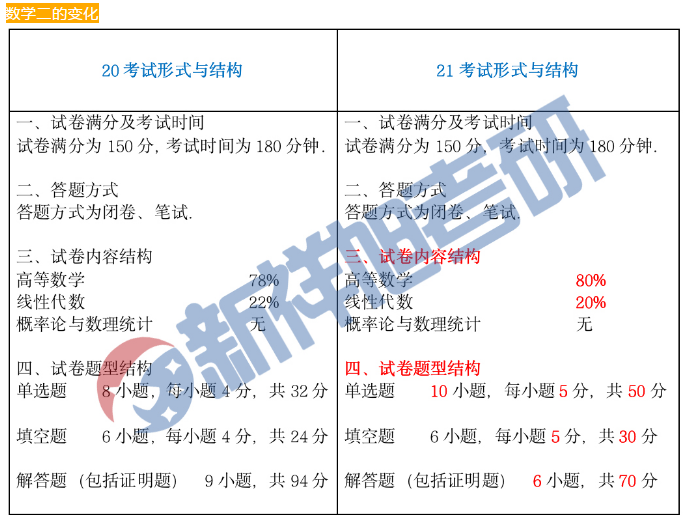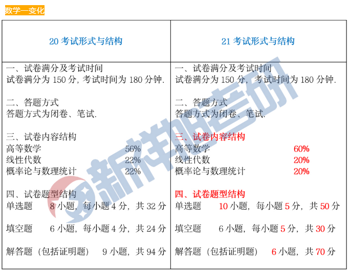 试卷结构发生大变化,特别是数学三,难度可能接近数学一。