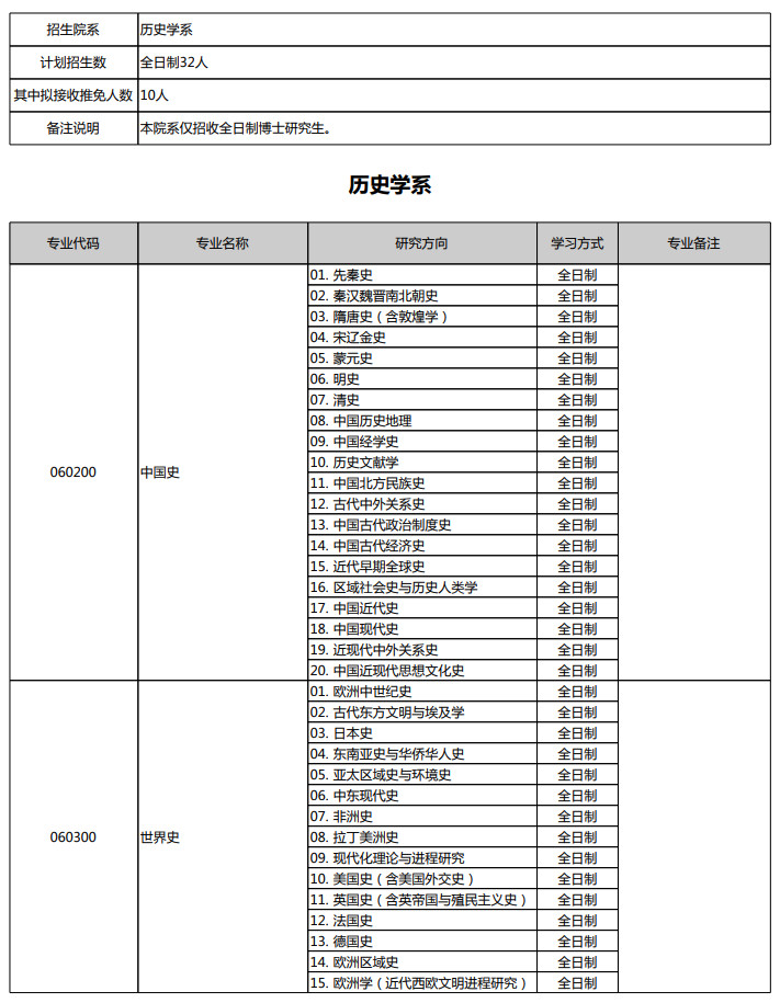 北京大学考研辅导班:2021北京大学历史学系考研招生目录