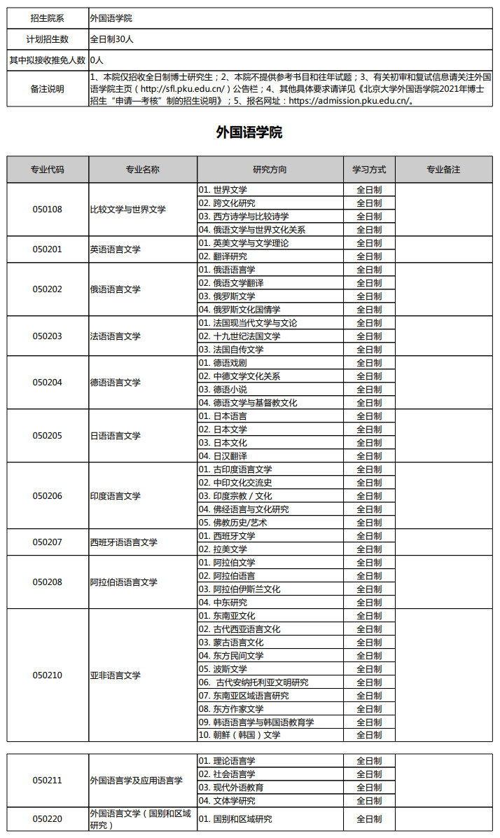 北京大学考研辅导班:2021北京大学外国语学院考研招生目录