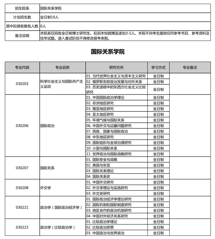 北京大学考研辅导班:2021北京大学国际关系学院考研招生目录