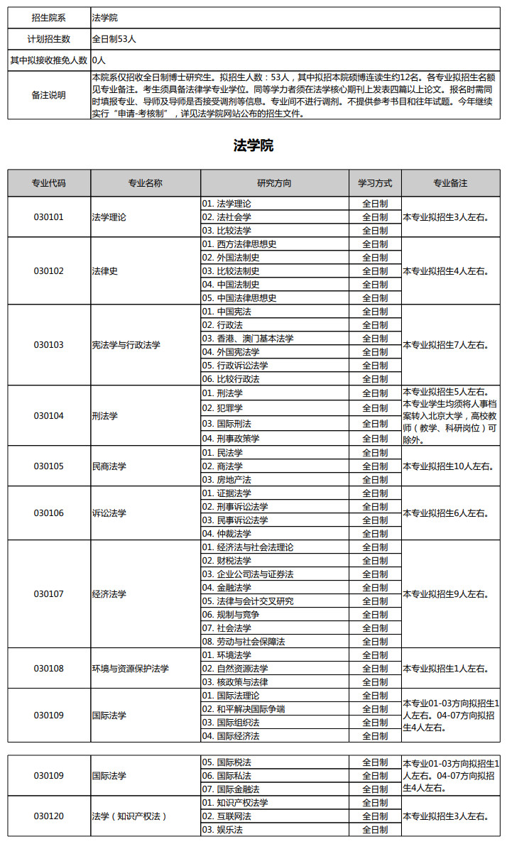 北京大学考研辅导班:2021北京大学法学院考研招生目录