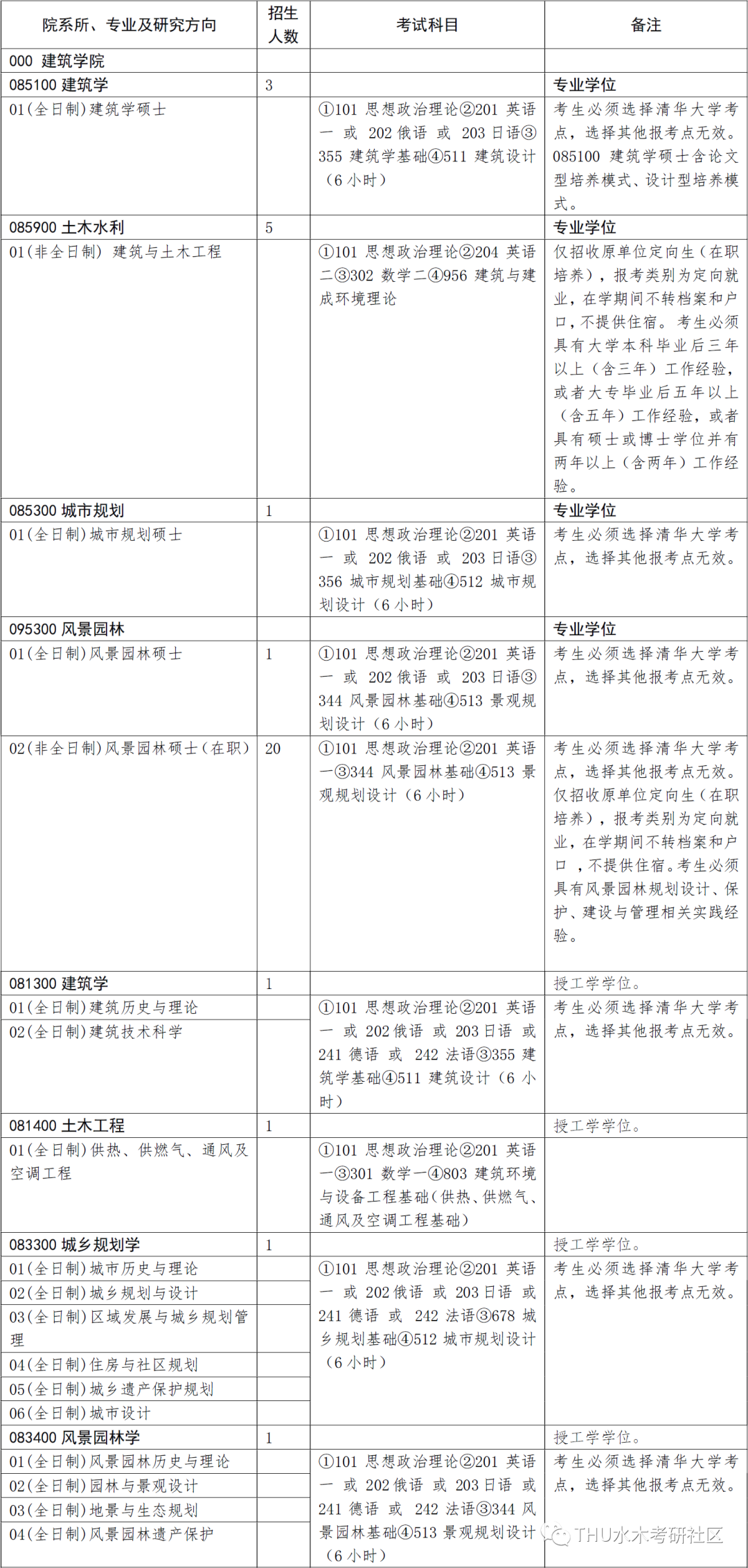 2021年清华大学建筑学院硕士研究生招生人数、专业目录、考试科目