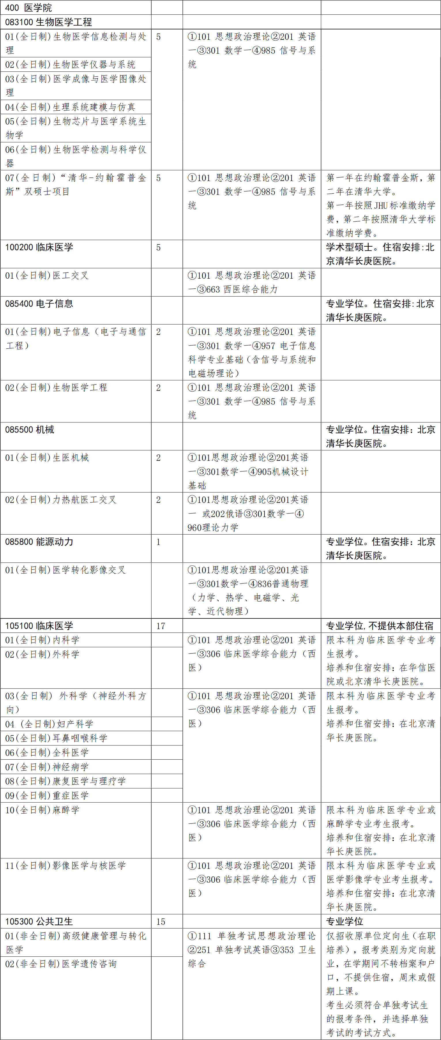 2021年清华大学医学院硕士研究生招生人数、专业目录、考试科目