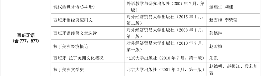 一、对外经济贸易大学西班牙语语言文学专业考研考试科目、参考书目、复试分数线