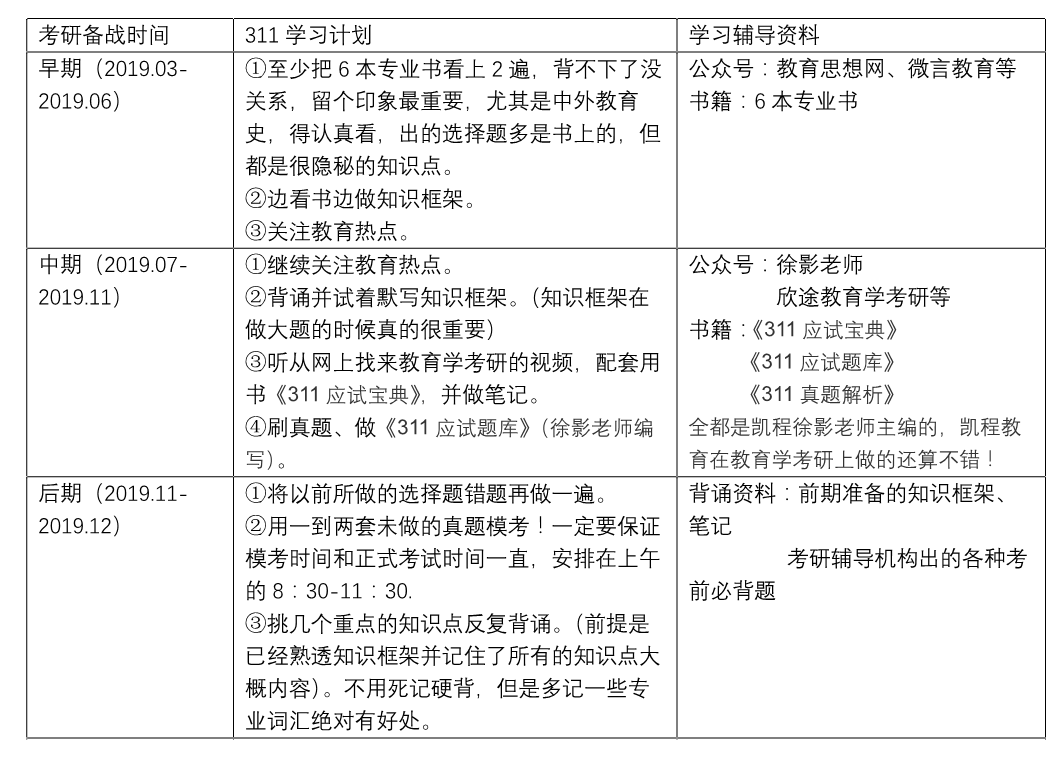 因为自己本科期间所用的教材与统考科目一致,所以自己就在统考院校中选择了一所双一流院校作为目标院校。对于像北师大、西南大学、湖南大学等属于自命题的院校,你在确定这些学校为目标院校时一定要查清楚它的参考书目。如果不确定,建议先从311参考书目复习,教育学的很多知识还是通用的,而且,以2020教育学考研的趋势来看,统考是大势所趋,很多自命题院校都加入了统考的队伍。我所报考的学校前几年也是自命题。