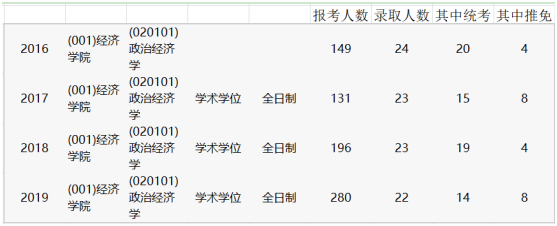 下图是我从学校研招网截取的近年来政治经济学的报考数据,可以看到近年来政治经济学专业的报录比是在不断上升的,去年已经达到了1:20(今年的数据还没有公布,我感觉应该也和去年差不多),这也与西南财政经的实力有着密不可分的联系。政治经济学的面试线一般是国家线,今年的面试线比国家线高了5分到达了350分。因为西财的复试比是1;1.25,而且初试占综合成绩的7成,所以基本上初试高分过了就很稳了。大家可以在考研文库搜一下历年的报录比再选择,中途换学校专业都不太好。