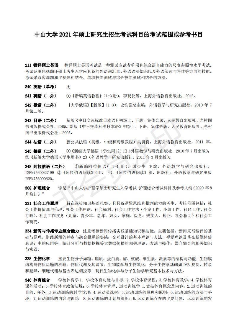 各位考生,这是中山大学21年的各个学院专业的考研专业课参考书+考试范围。