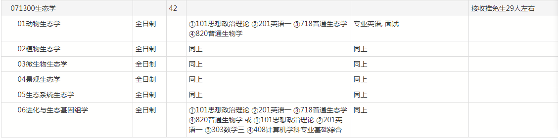 北京师范大学生态学科始建于1923年成立的动物学教研室,是211工程和985工程重点建设的学科。形成了以孙儒泳院士为代表的生理生态学,以郑光美院士为代表的鸟类生态学,以徐汝梅教授为代表的昆虫种群生态学等优势特色研究领域。1984年被批准建立生态学博士学科点,1987年被国家教委确定为首批国家重点学科,2001年被教育部再次确定为国家重点学科,2007年在国家重点学科评估中位列前茅,2012年调整为一级学科,且在国家一级学科评估中位列第一。
