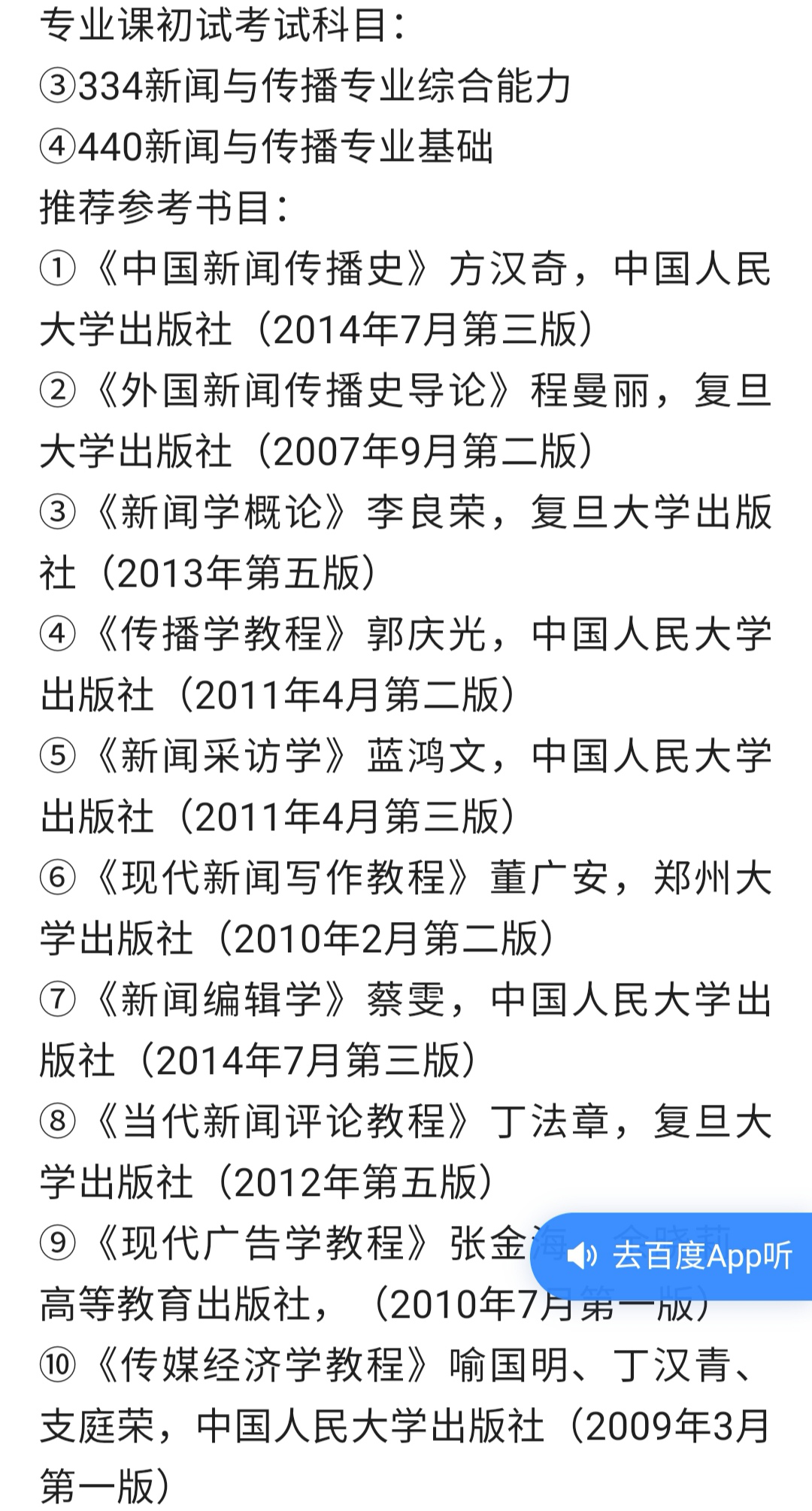 一、郑州大学新传专硕考研招生专业目录与参考书目