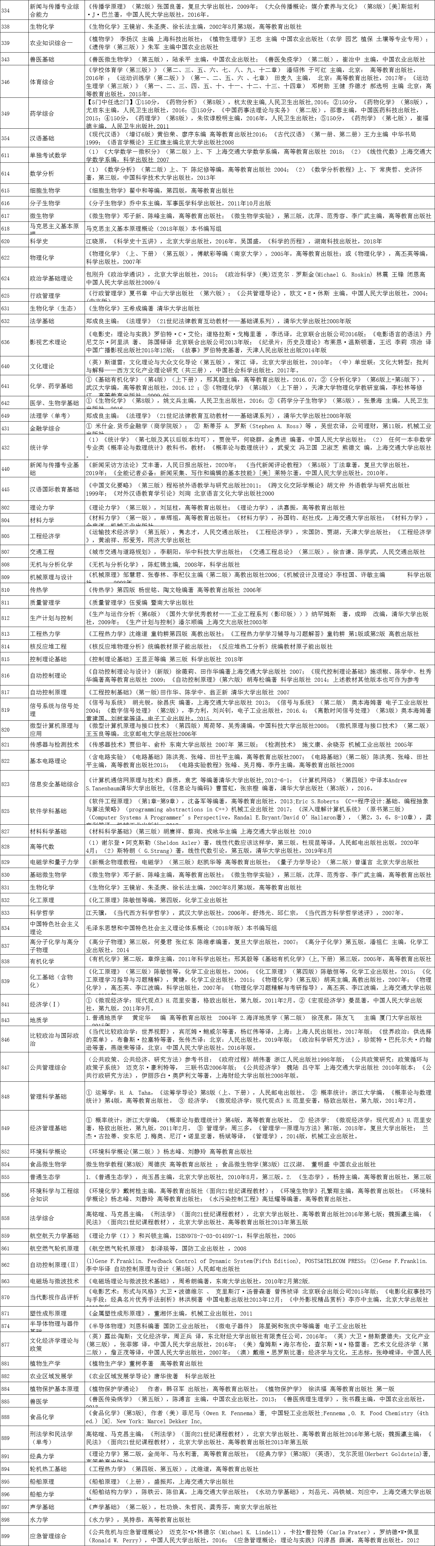 各大自命题专业的参考书,均在下表中,各位考生可按照科目对应查看。