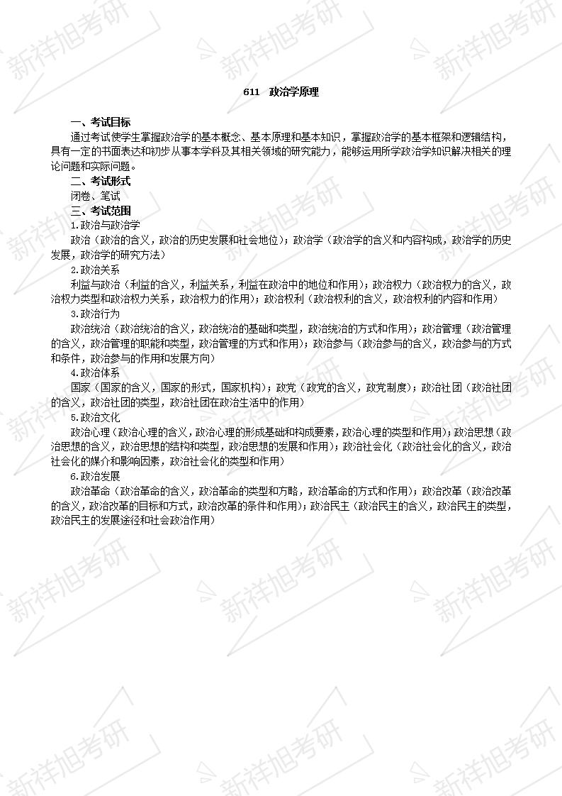 中南财经政法大学21年考研大纲+重难点:611政治学原理,如上图。
