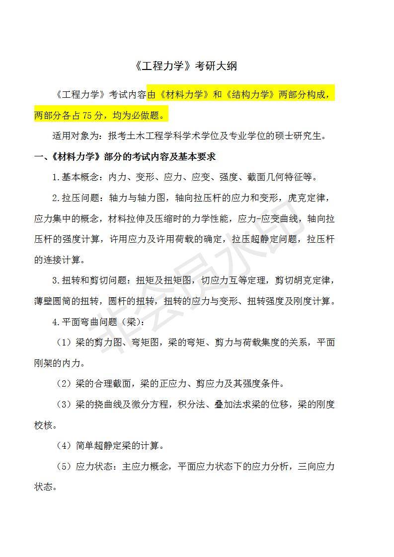 华中科技大学21年考研大纲+重难点+题型分值:841工程力学,如下图: