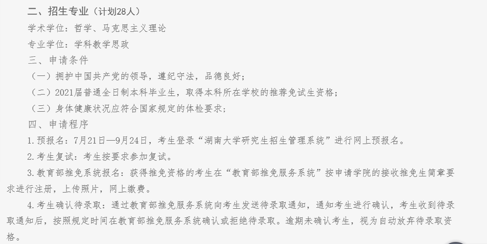 湖南大学,985、211高校,马克思主义学院是全国重点马院,师资力量雄厚。就湖南大学马克思主义学院而言,历年来招收的推免学生名额不定。