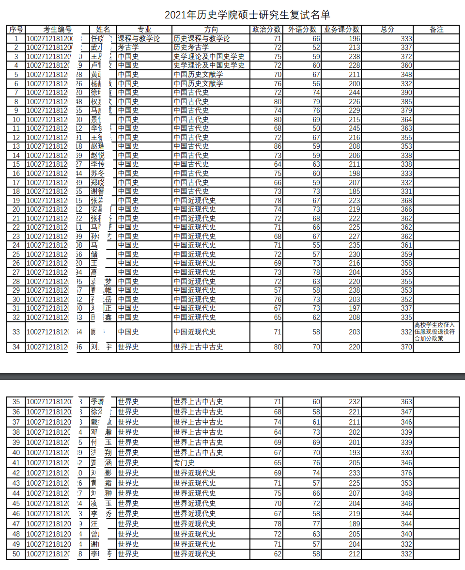 2021年北京师范大学历史动学院考研复试时间、复试名单等方案细则