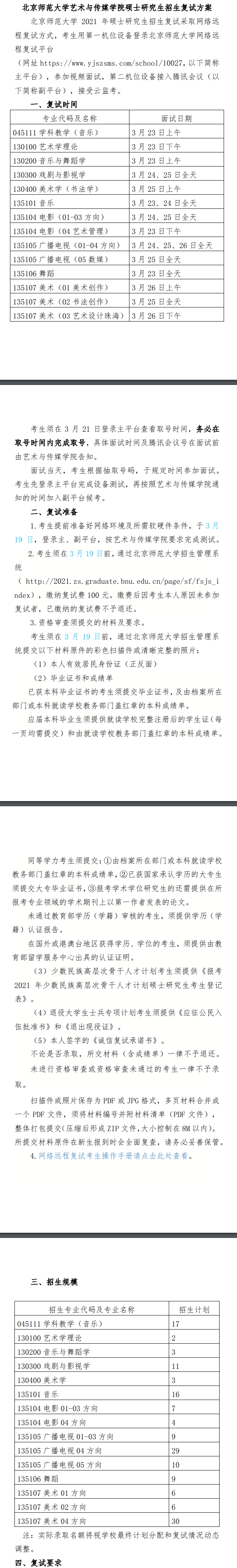2021年北师大艺术与传媒学院硕士研究生考研复试方案及要求