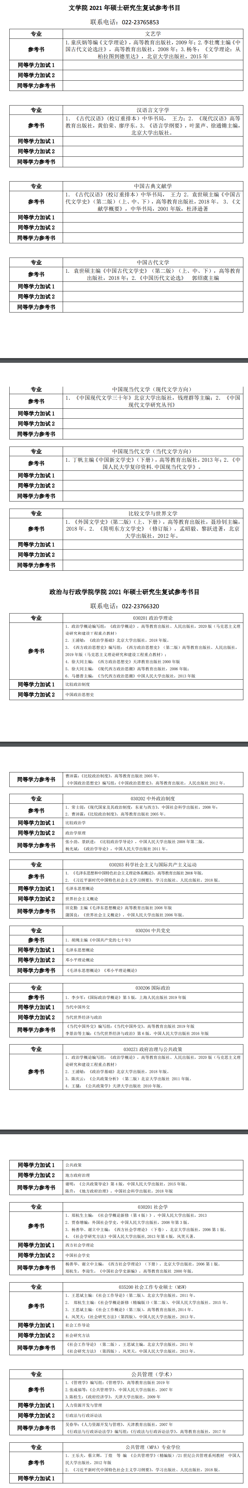2021年天津师范大学各院系硕士研究生考研复试参考书目