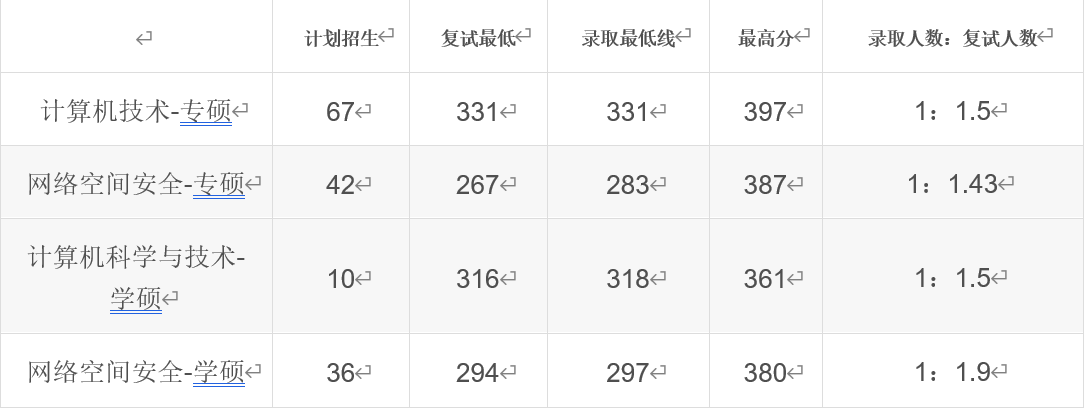 而计算机学硕的专业课也是相同的,不过今年这学硕确实有点捡漏,最低316分即可,至于网络空间安全,进来的培养方向比较接近于密码学,从就业来说,大家都会是程序员,其实网安还有不少大牛老师,研究生现在毕业论文需要外审,所以一般对前2年的科研非常看重,所以选择网安也会是个不错的选择,最低267分,简直是点击即送,但是专业课只有一门,即数据结构,难度低,暨大网安学科排名在全国前8,可能是因为刚开设,所以大家还没反应过来,就目前的情况,暨大网安未来两年应该会爆,所以选择计算机下的2门专业课,当然也是一个比较稳的选择了,这部分的问题,就由同学们自己定夺吧!如果想了解比较详细的培养方案,根据自身的情况来分析,可以联系新祥旭的老师们开展一对一规划,更有专业课辅导课程,祝你稳住、扎实学好专业课。