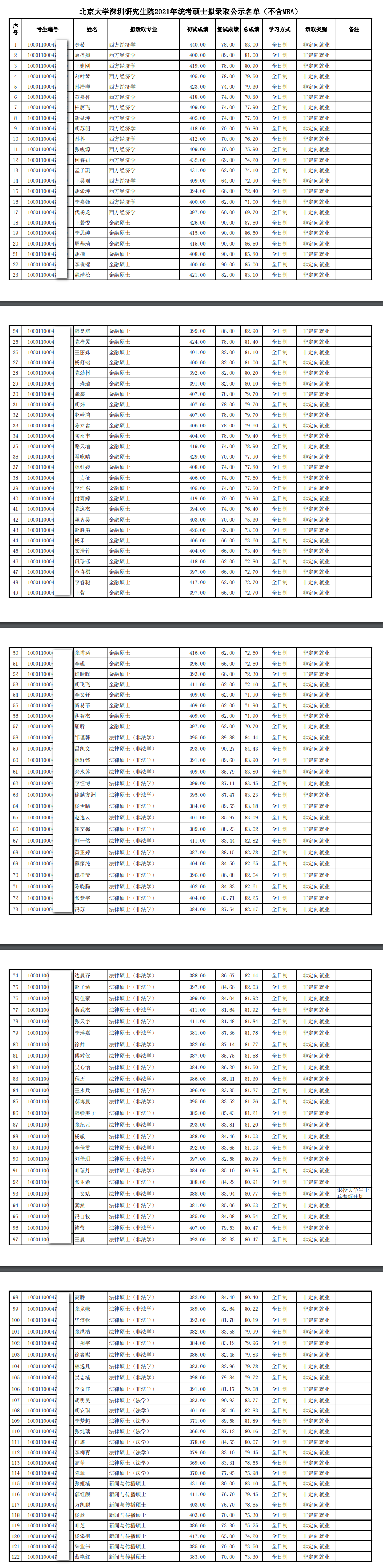 2021年北京大学深圳研究生院统考硕士拟录取公示(不含MBA)