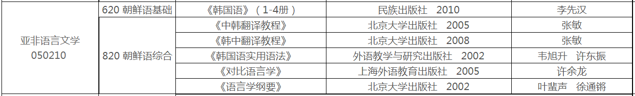 重点考查考生的朝鲜语语言水平,以及对朝鲜语语言学、朝鲜语国家文学、朝鲜语国家国情、朝鲜语与汉语互译等方面的基础理论知识与国内外相关领域研究动向的掌握程度。