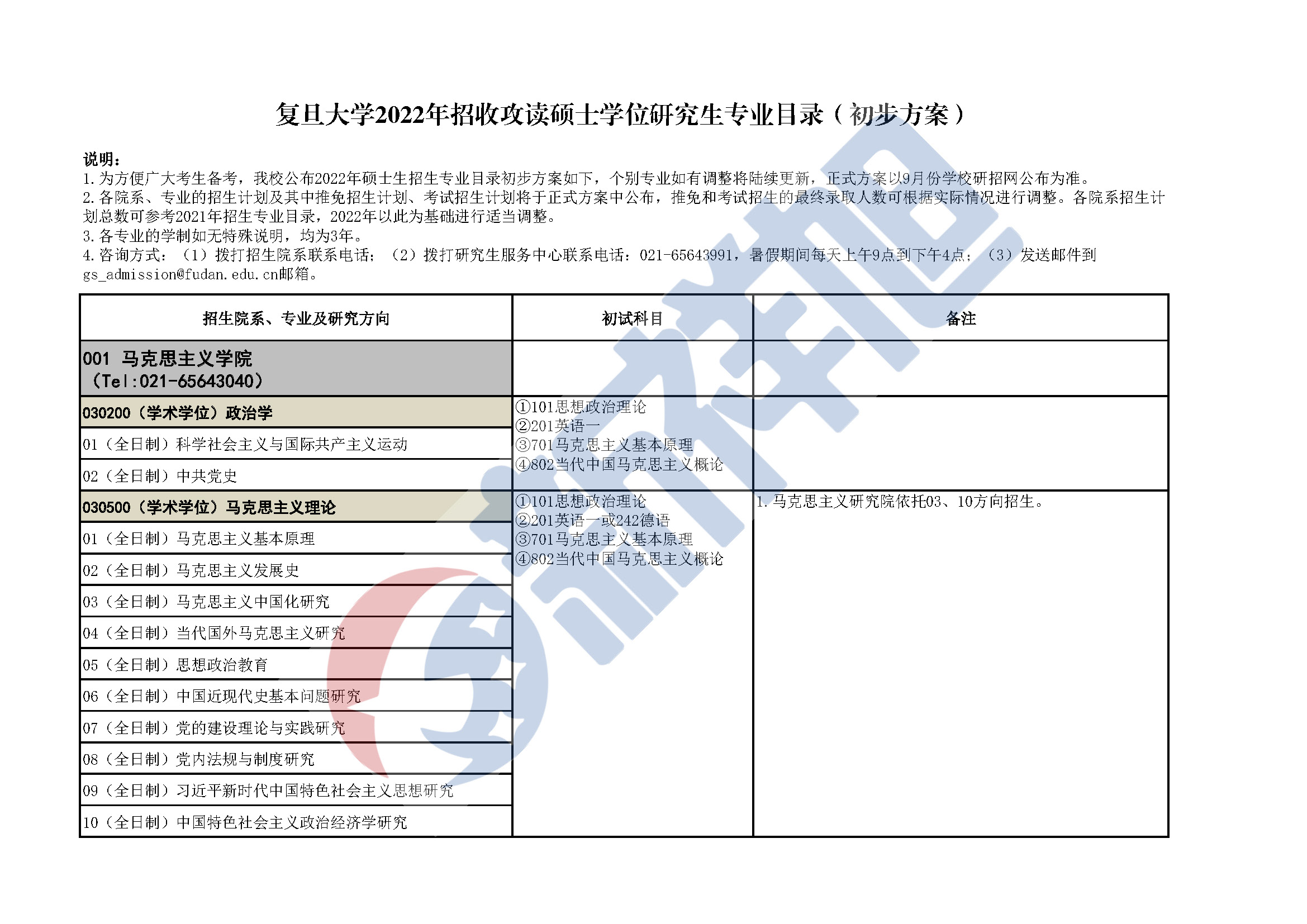 复旦大学考研辅导班:复旦大学2022年招收攻读硕士学位研究生专业目录(初步方案)