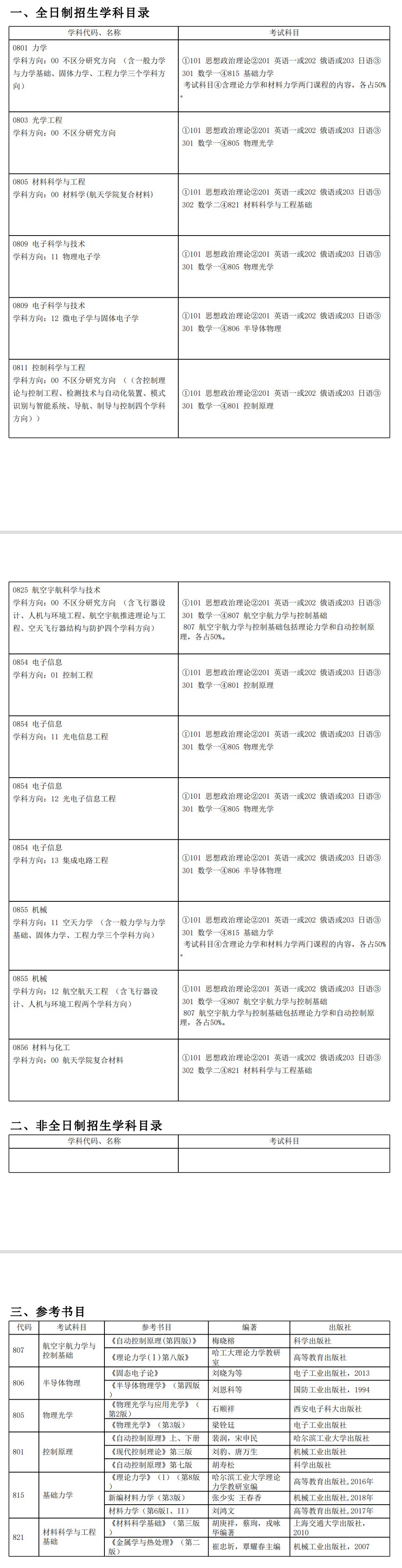 哈尔滨工业大学考研辅导班:2022年哈尔滨工业大学航天学院考研招生目录、考试科目及参考书目