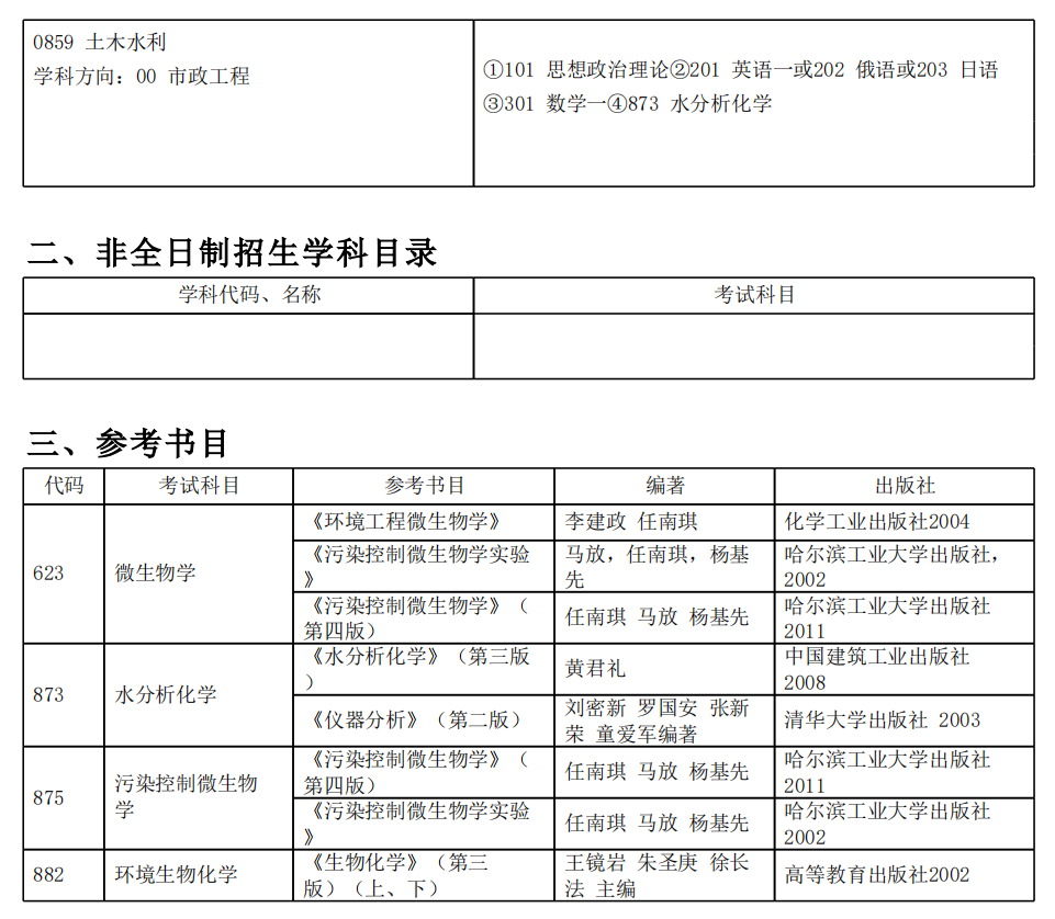 哈尔滨工业大学考研辅导班:2022年哈尔滨工业大学环境学院考研招生目录、考试科目及参考书目