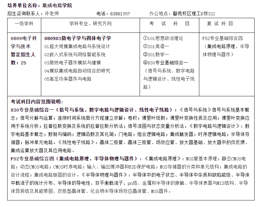 安徽大学考研辅导班:2022年安徽大学集成电路学院学术学位考研招生人数、考试科目及专业课考试范围