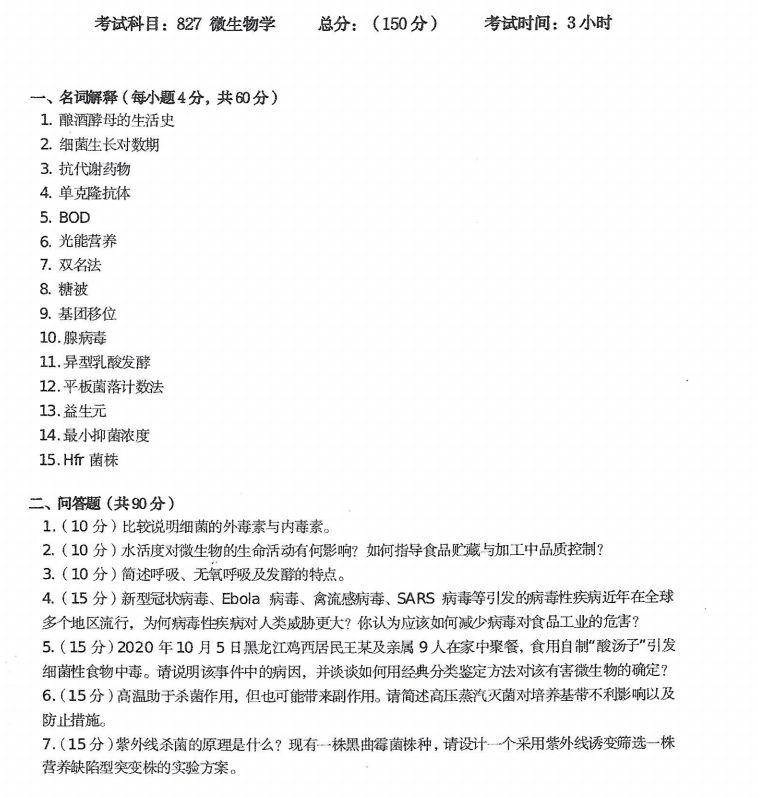 浙江工商大学考研辅导班:2021年浙江工商大学硕士考研真题之827微生物学