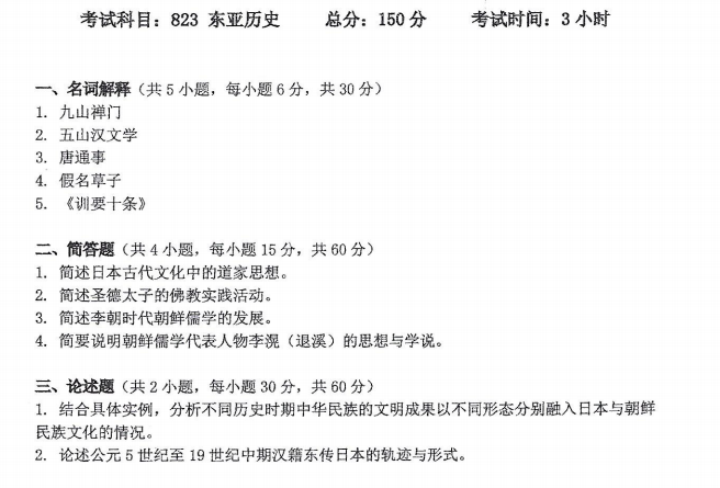浙江工商大学考研辅导班:2021年浙江工商大学硕士考研真题之823东亚历史
