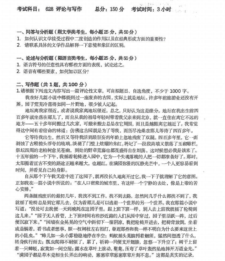 浙江工商大学考研辅导班:2021年浙江工商大学硕士考研真题之628评论与写作