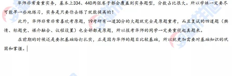 在难度方面,我个人认为虽然报录比有时候看着很可怕,但是你要去与之竞争的其实也就前10个左右,你只要保证自己比大多数报考生优秀就够了。此外,我报考华师大时心里的小九九是,人中龙凤都保研了,再厉害点的会去清北复交中传,这样筛选下来,华师的竞争也不算特别激烈。同时,华东师范大学的题型比较中规中矩,不会出一些难题怪题,所以对跨考生也是非常友善的。