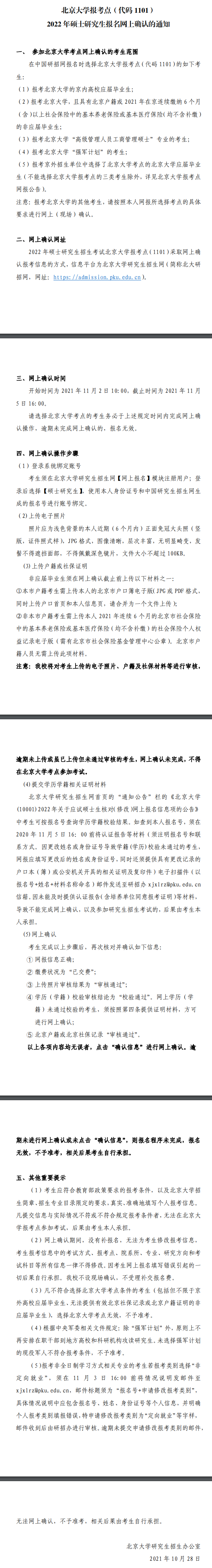2022年全国硕士研究生招生考试北京大学报考点网上确认说明