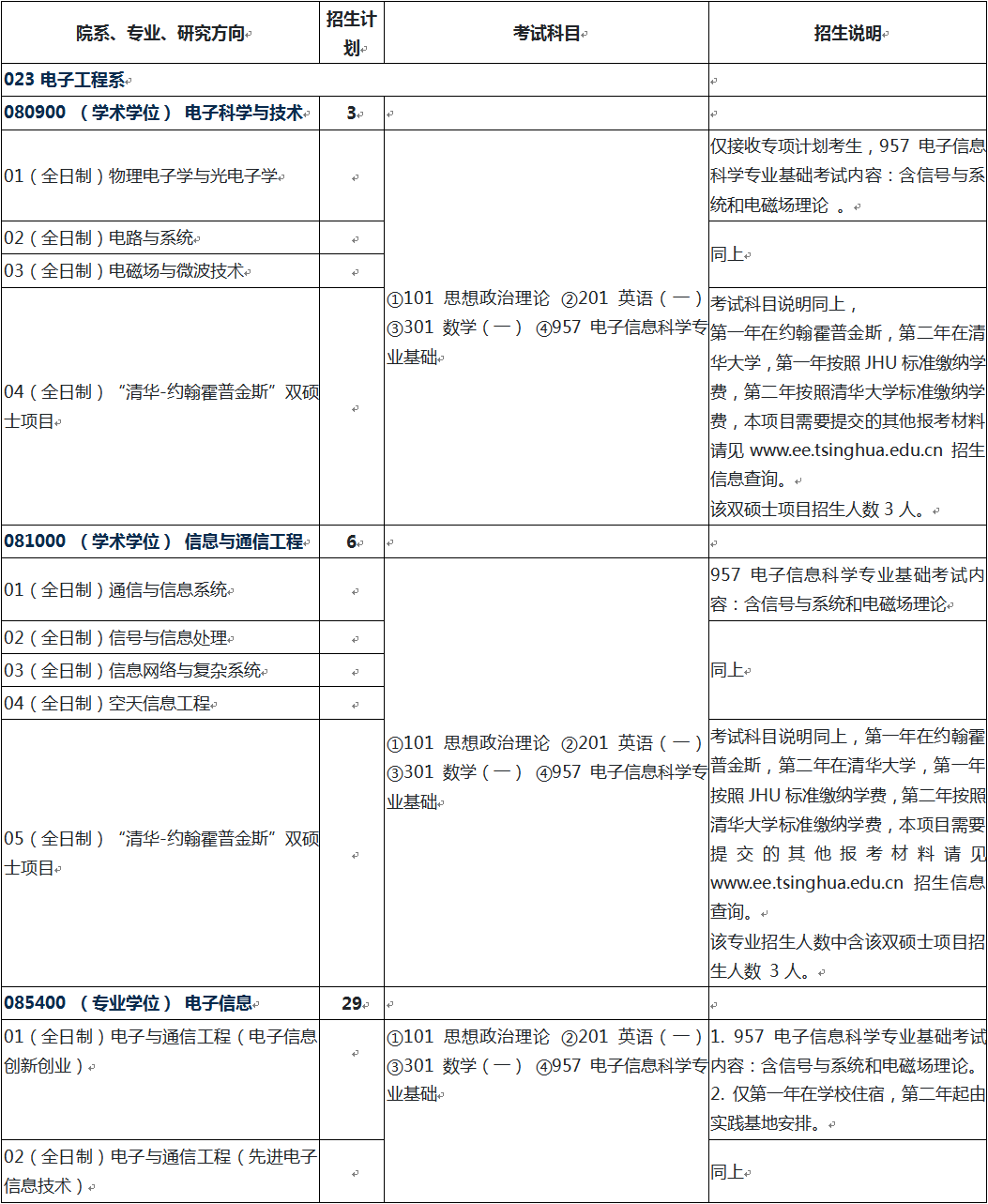 2022年清华大学电子工程系硕士研究生招生专业目录、考试科目、招生人数