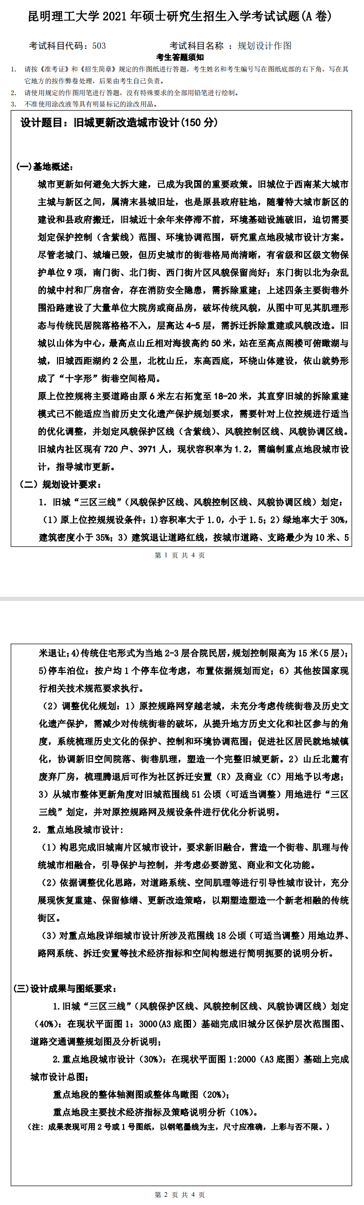 昆明理工大学考研辅导班:昆明理工大学2021年研究生入学考试503规划设计作图考研真题