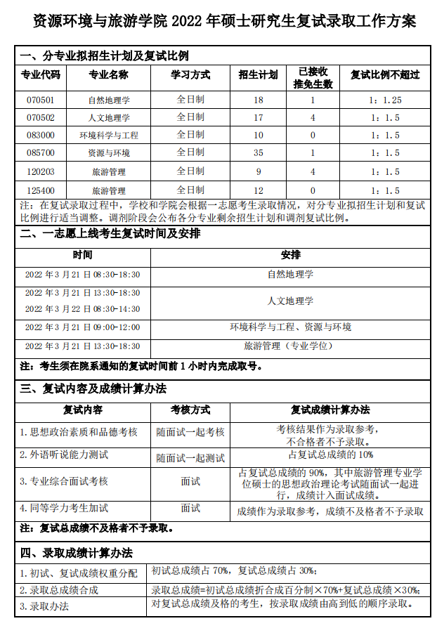 首师大考研辅导班:2022年首都师范大学资源环境与旅游学院考研复试录取工作方案!