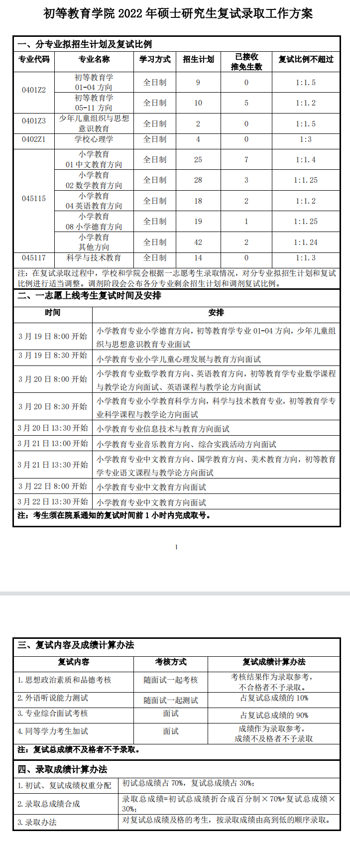 首师大考研辅导班:2022年首都师范大学初等教育学院考研复试录取工作方案!