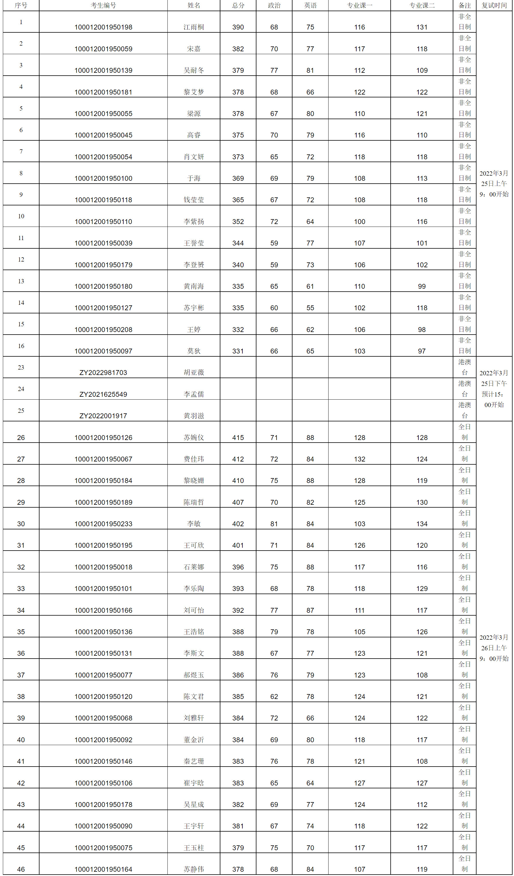 正式复试时间为3月25日和3月26日,具体安排参见复试名单表格。
