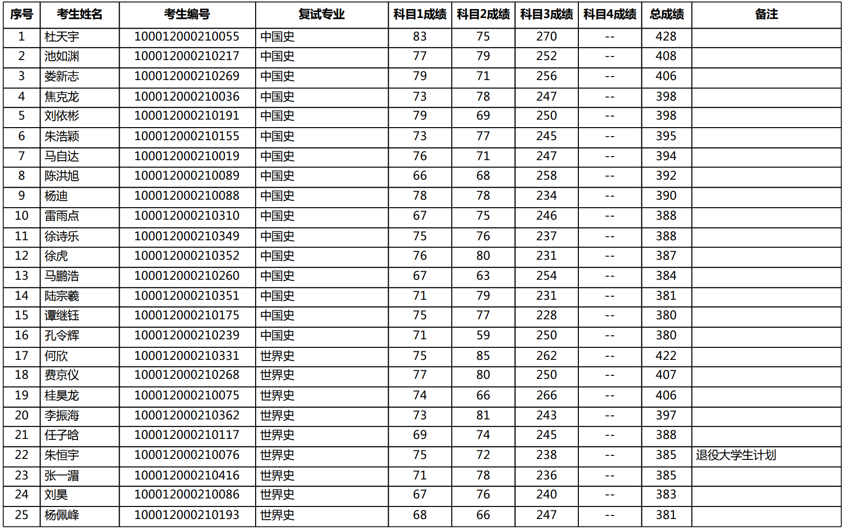 附件:北京大学历史学系2022年度硕士研究生统考复试名单(大陆考生)
